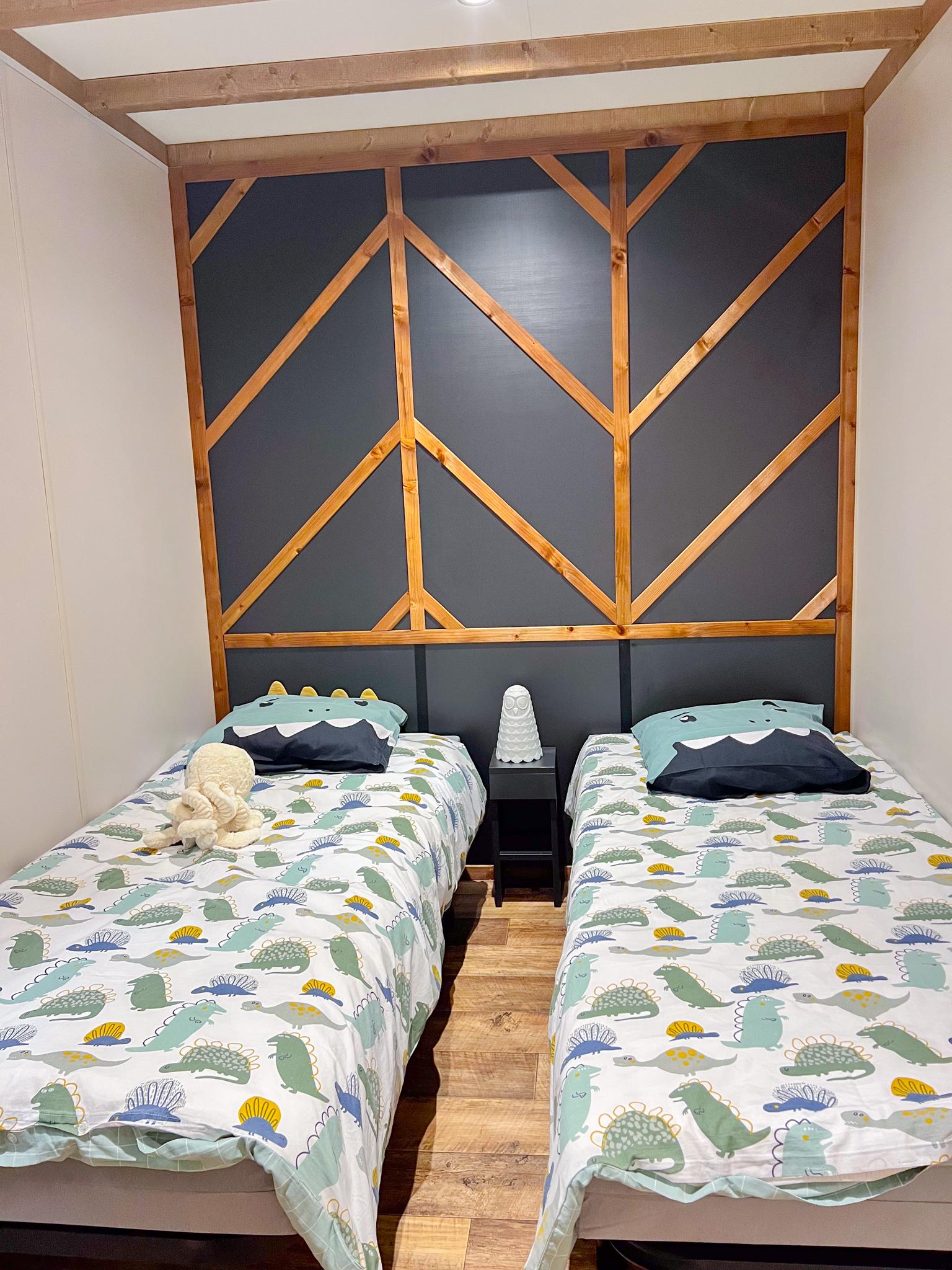 The second bedroom has two single beds (80 cm x 190 cm each) and a standard-sized shower (80 cm x 80 cm).